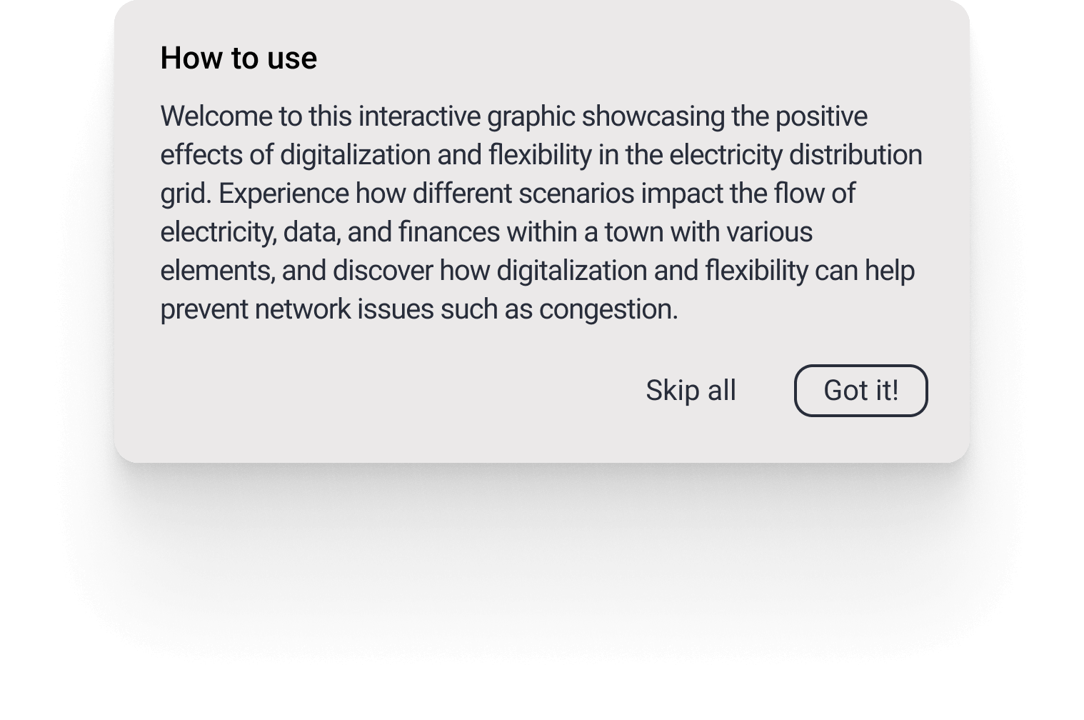 Smart Metering Systems are installed everywhere, resulting in the presence of blue data flows towards the now fully digitized control center. The transformers are equipped with Phasor Measurement Units (PMUs), collecting, and sending grid data to the control center, enabling early detection and resolution of grid problems such as congestion. Prosumers and Consumers are now as well equipped with Home respectively Factory Energy Management Systems which enable both observability and, if necessary, receiving and responding to flexibility demands sent by the control center of the utility.