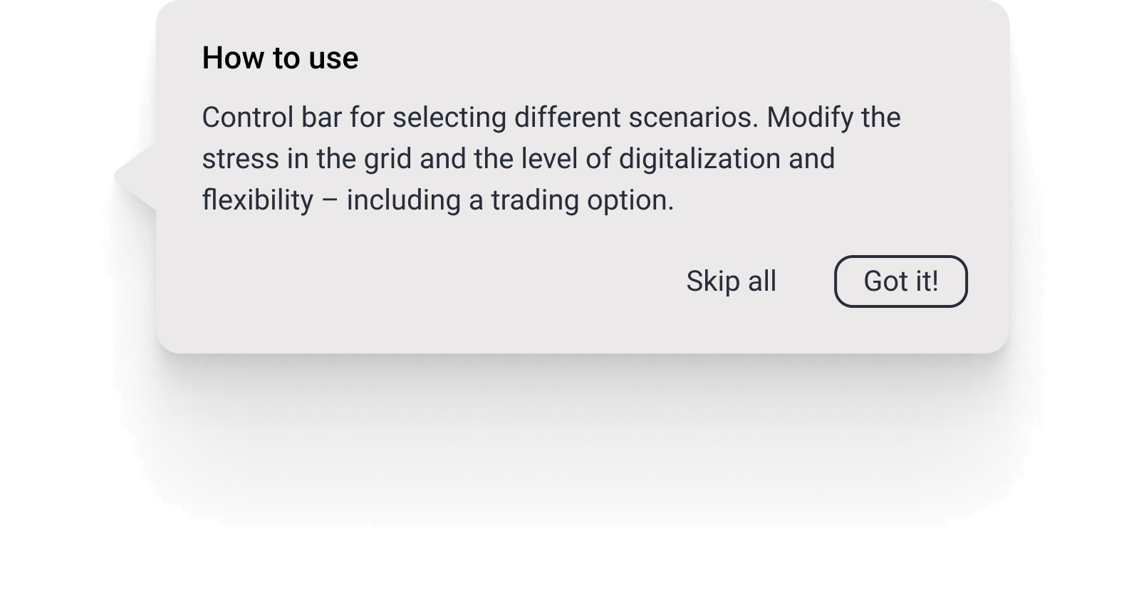 In this sunny and windy scenario, electricity production exceeds the consumption. Both, PV panels and wind turbines are generating a significant amount of electricity. As opposed to scenarios without digitization and flexibility management, adaptation of demand is possible to use all locally generated electricity and prevent any congestions in the local grid.